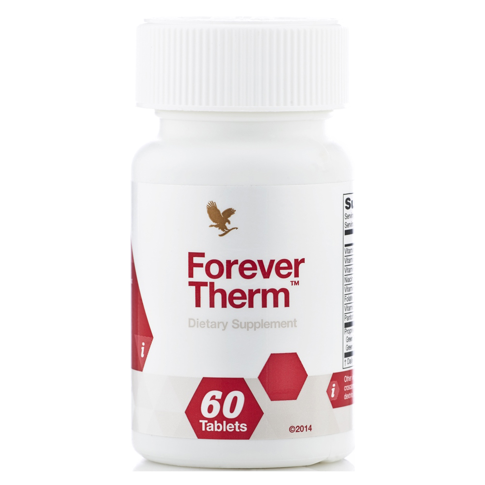 Forever Therm™ enthält Grünen-Tee-Extrakt, Koffein, Folsäure und Pantothensäure sowie Vitamine. Die enthaltenen Vitamine C, B1, B2, B3, B5, B6, B9 und B12 tragen zu einem normalen Energiestoffwechsel bei.